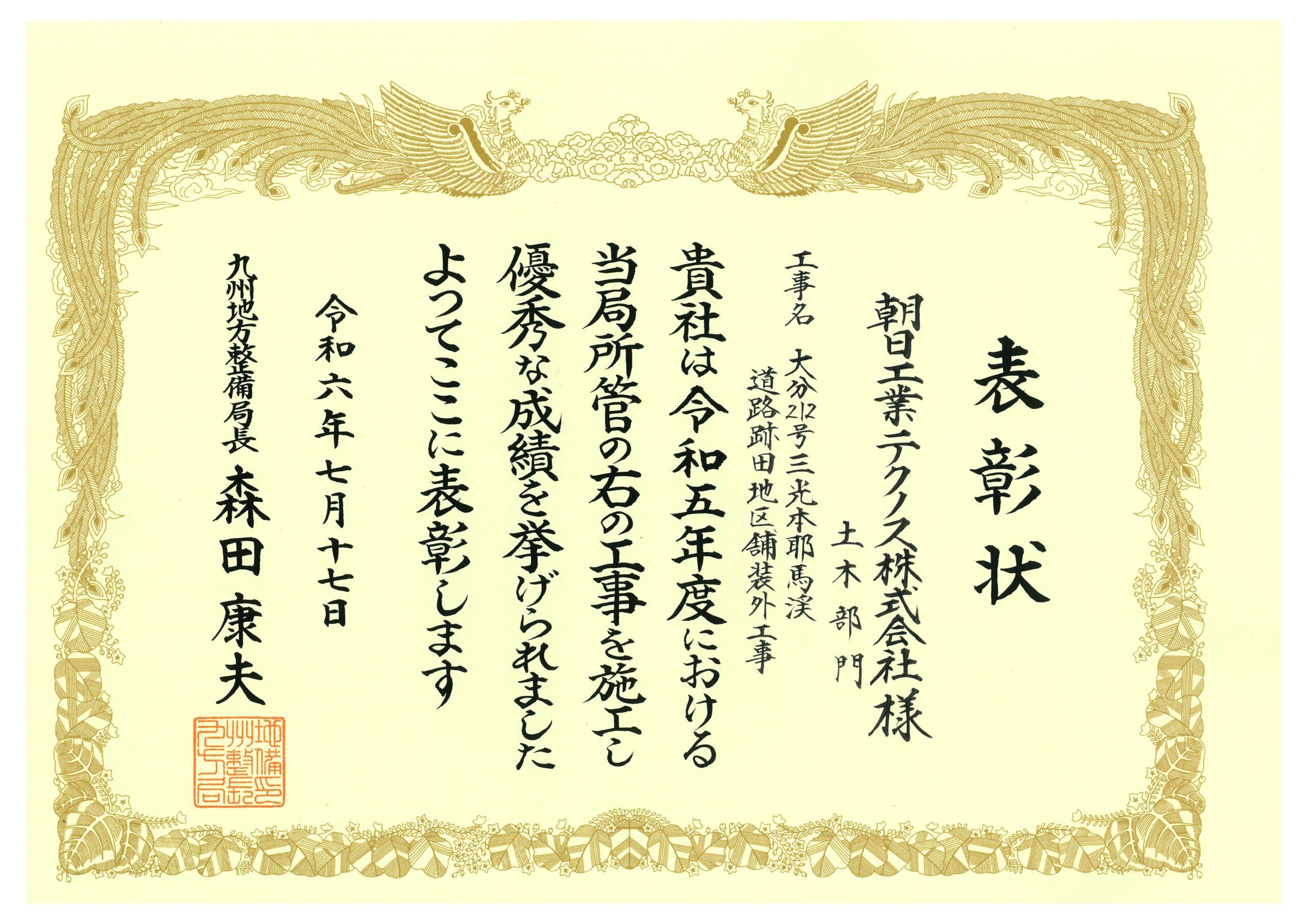 先般、下記工事に於いて、令和6年度 国土交通行政功労表彰を受賞しました。