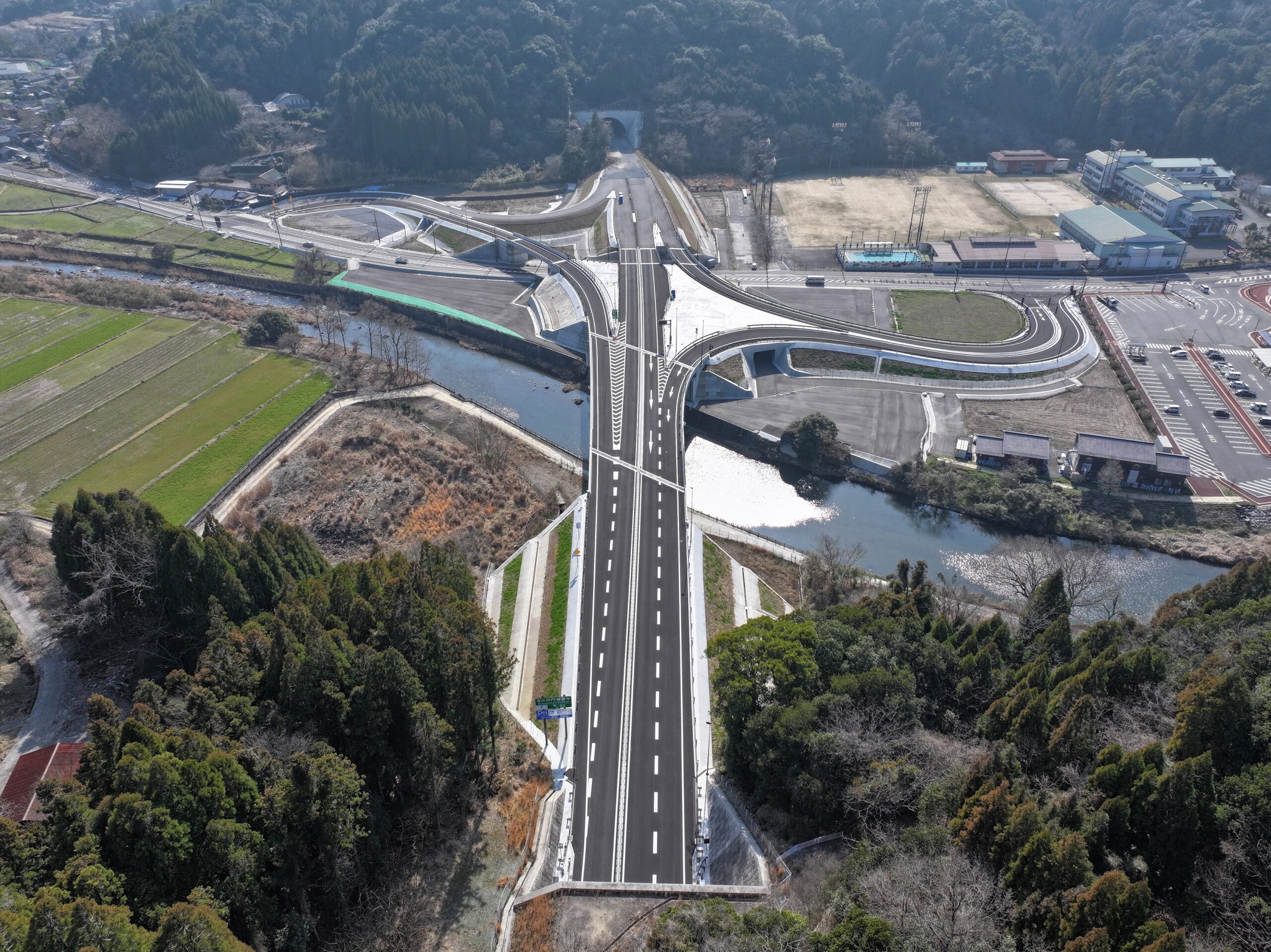 本工事は「日田中津道路」の一部を構成する三光耶馬渓道路において、令和6年3月24日に開通した田口IC~青の洞門・羅漢寺IC(延長5.3km)における舗装工事です
